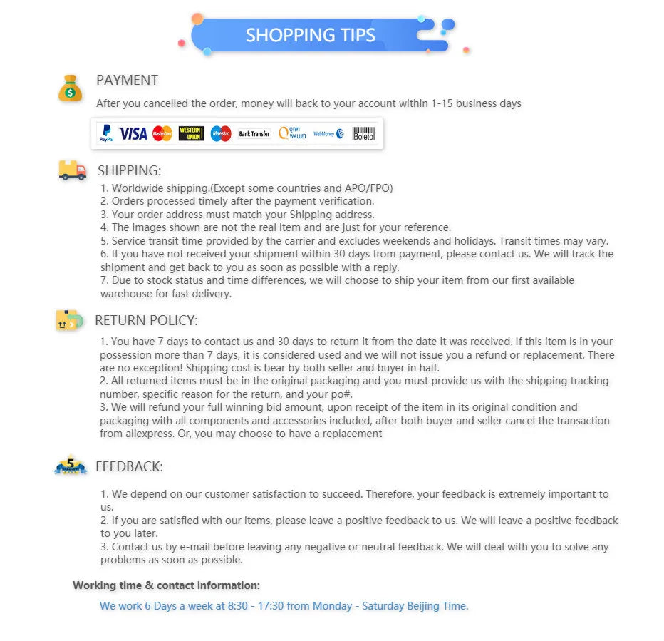 1.Due to the different monitor and light effect, the actual color maybe a slight different from the picture color.