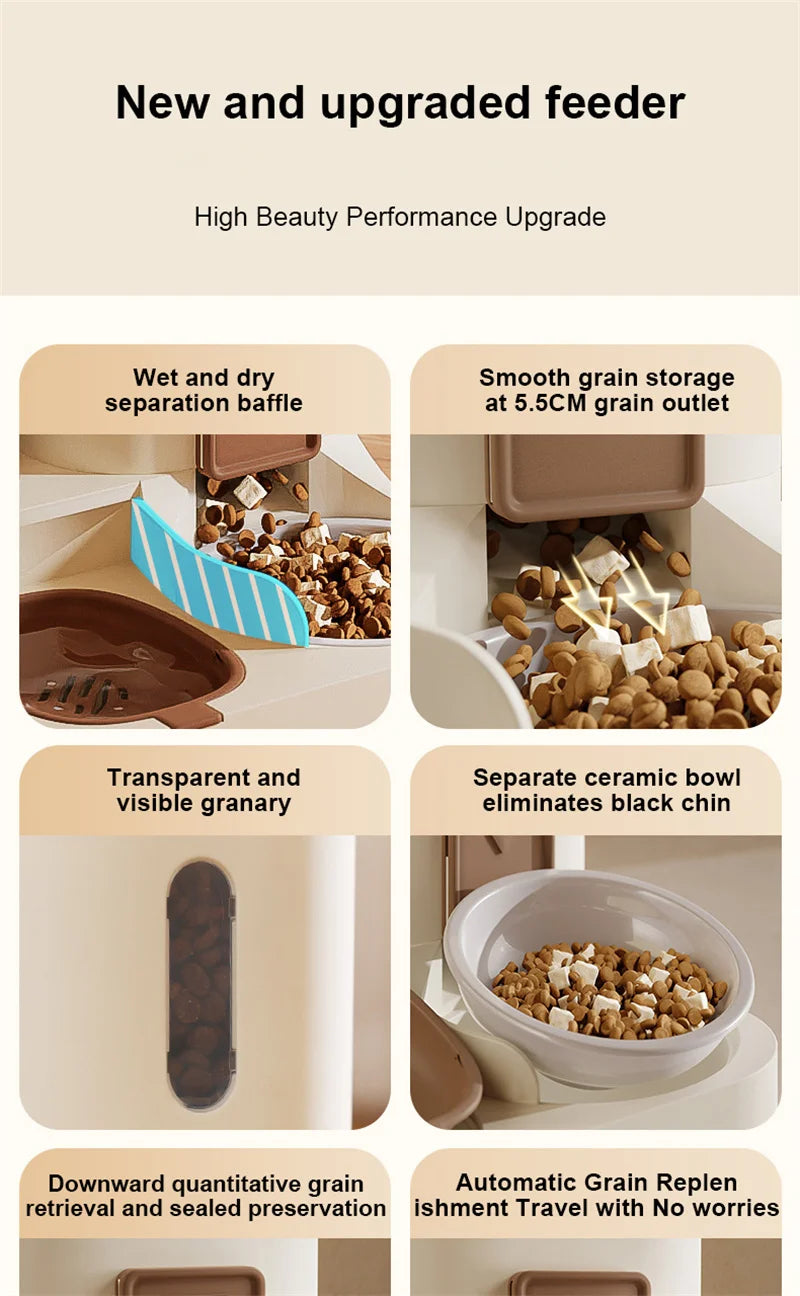 Pet Cat Automatic Feeder, Water Dispenser, Large Capacity Dry Wet Separation Food Container, Pet Supplies
